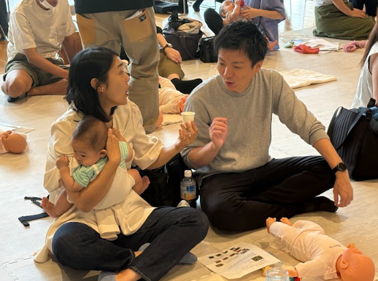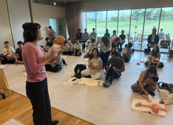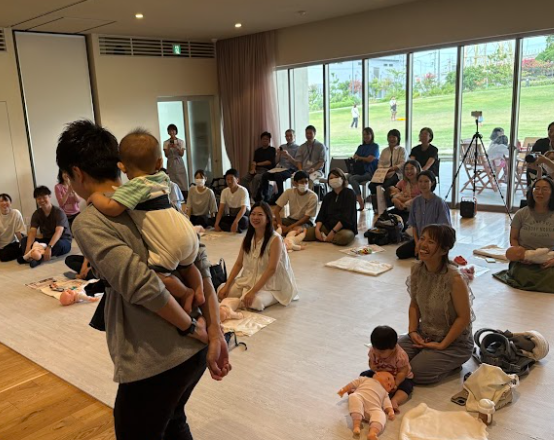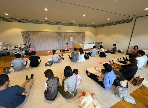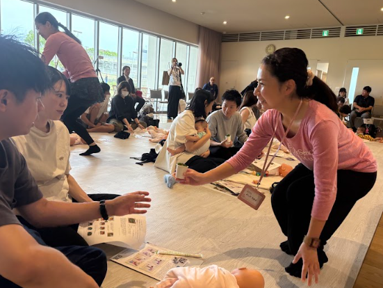 9月、大阪府泉大津市のシーパスパークで、両親学級が開催され、妊娠中や産後のママやパパが20人ほど参加しました。
