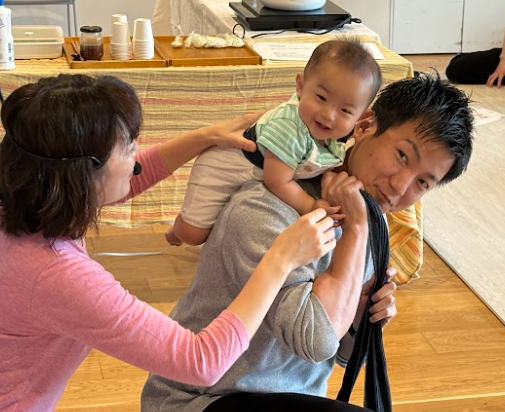 なかなか結び方に慣れていなくて苦戦するパパをうよそに、おんぶされている赤ちゃんは嬉しそうにしていたのが印象的でした。