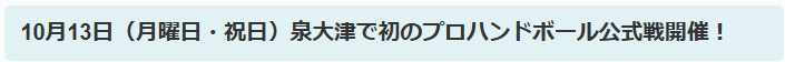 泉大津市にて、初めてプロハンドボールの試合が開催されます!