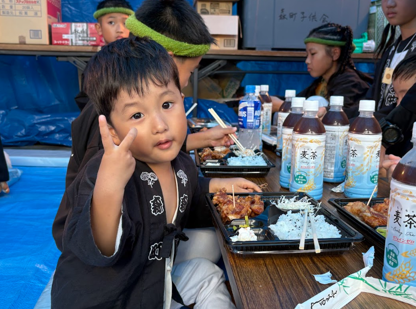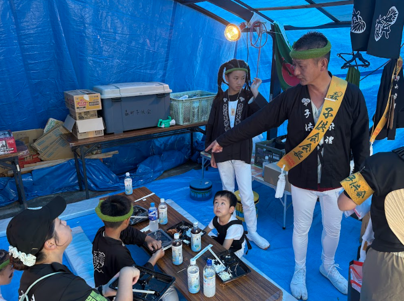 森町のだんじり小屋の横には「子供会詰所」が設置されていて、そこで子ども達はお昼ご飯を食べます。