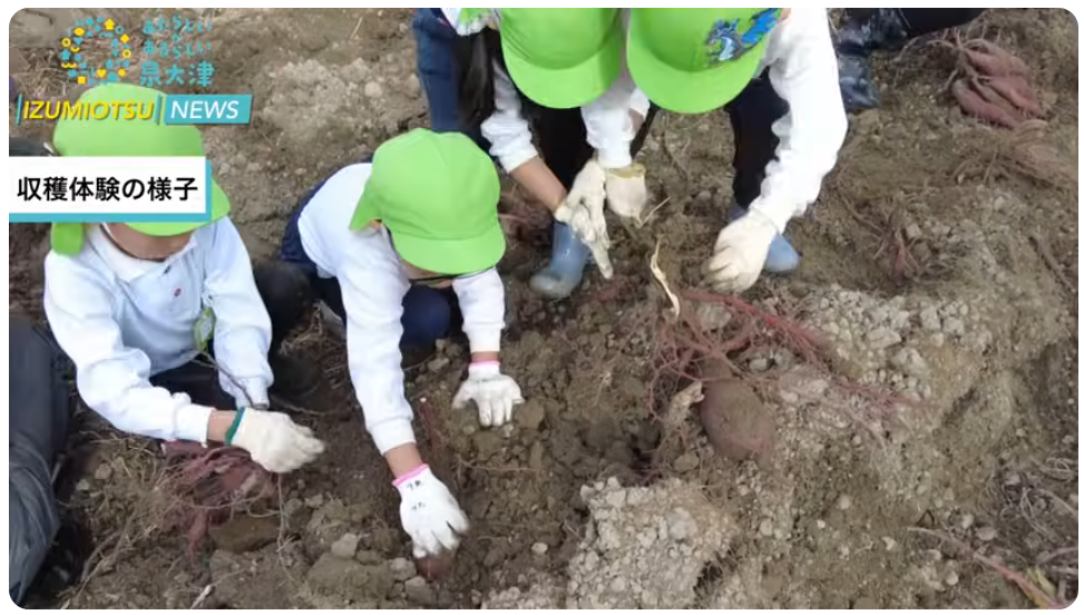 食育推進プロジェクトは、JAいずみのと連携し、「触れる・食べる・作る」 をキーワードに、農業体験や調理を通じて、園児たちが農業や食への興味を深めることを目的としています。 当日は、オーガニック野菜の生産技術の習得を目指す講座「オーガニックアカデミー」の受講生がサポーターとして参加し、認定こども園の園児たちが市内の体験型農園でさつまいもを収穫し、自分で掘ったさつまいもを使ったクッキングイベントが行われました。