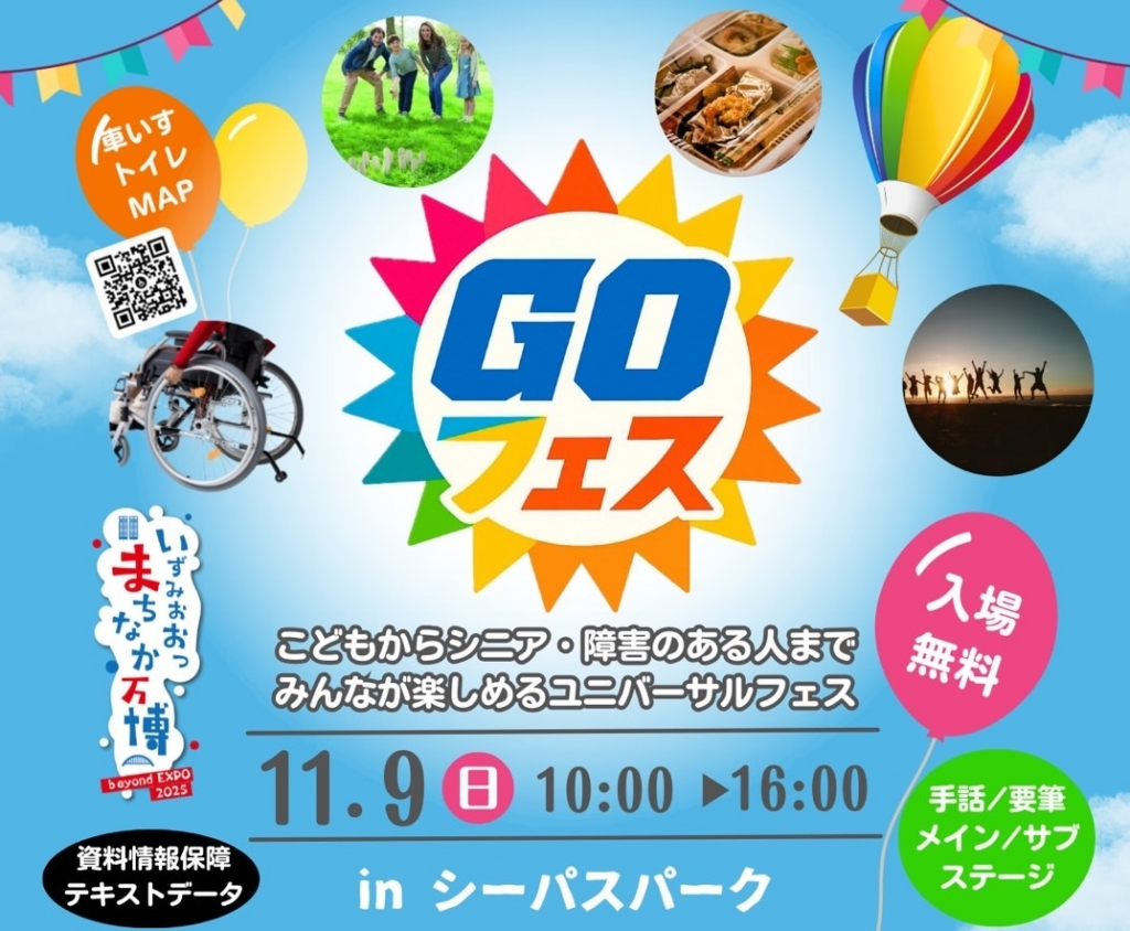 「健康共生(けんこうきょうせい)」をテーマにした、子どもからシニア、障がいのある人までみんなが楽しめるユニバーサルフェスイベントです。ステージでは、着物やウェディングドレスでのショー、ダンスや音楽演奏などを披露。だんじりを通じた認知症啓発に関する講演会や「災害時にシニア・障がい者はどうなるのか」などをテーマに対談も行います。